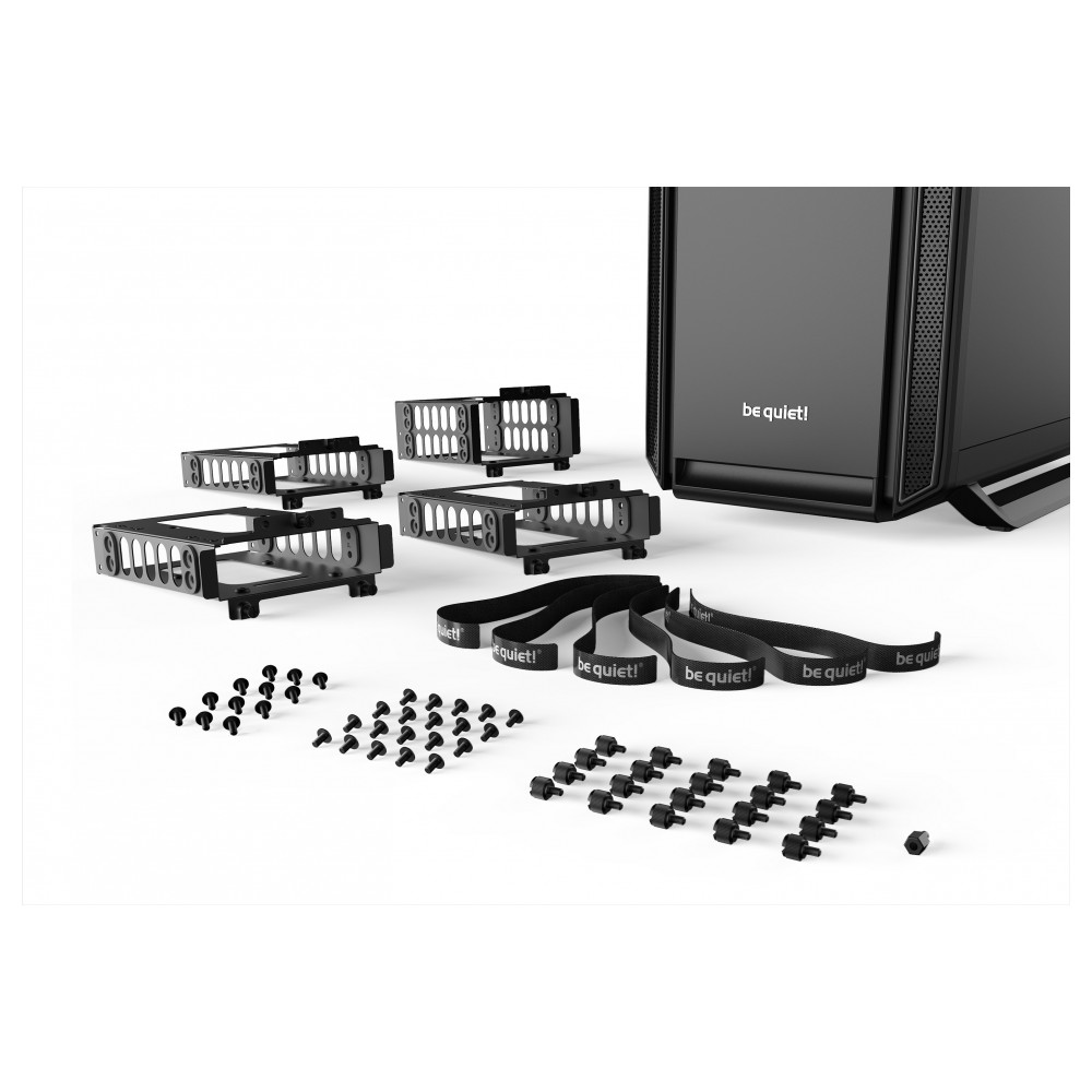 Trotz seines kompakten Designs bietet das Silent Base 601 einen großzügigen Innenraum und Aussparungen, sodass sogar ein E-ATX Mainboard verbaut werden kann. Die durchdachte Anordnung von Komponenten erlaubt es auch mehreren Grafikkarten und großen Kühlern genügend Platz zu finden.