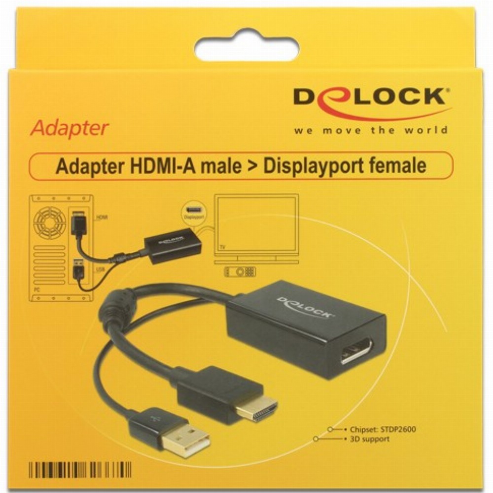 Mit diesem Adapter von Delock können Sie z. B. einen Displayport Monitor über eine freie HDMI Schnittstelle Ihres Systems anschließen.