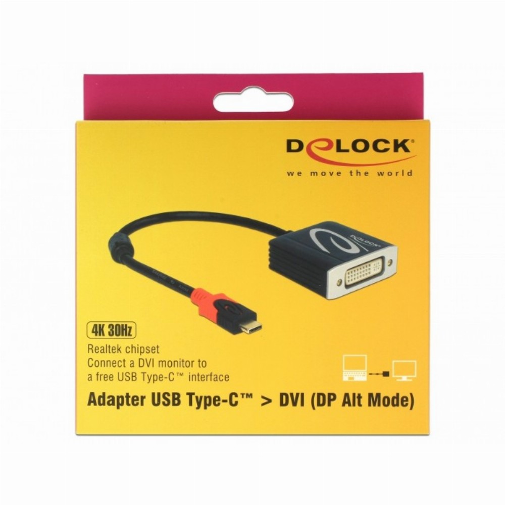 Dieser Adapter von Delock ist für den Anschluss eines DVI Monitors an einen Computer mit USB-C™ Schnittstelle und DisplayPort Alternate Mode Unterstützung geeignet. Somit kann der Adapter an verschiedenen Notebooks wie dem MacBook, Chromebook und ähnlichen angeschlossen werden. Außerdem kann der Adapter an einer Thunderbolt™ 3 Schnittstelle betrieben werden.