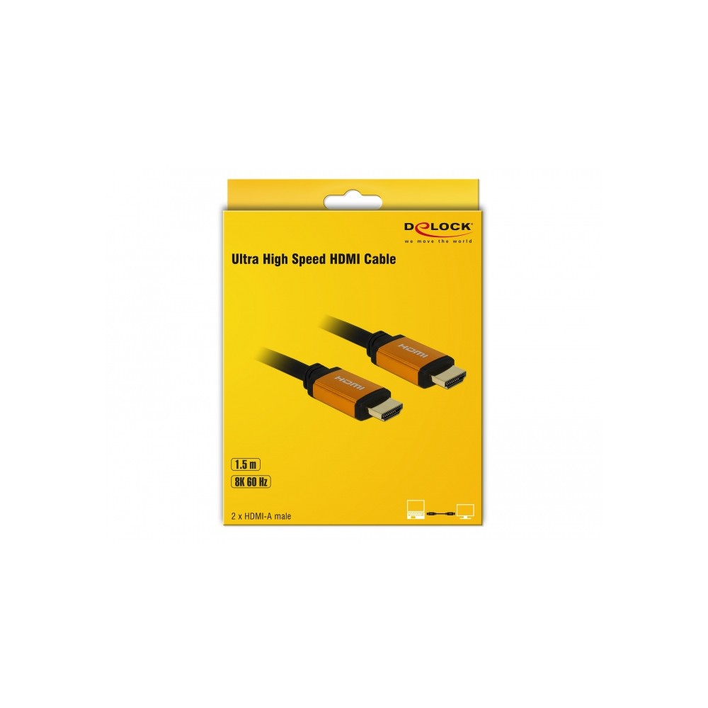 Dieses hochwertige Ultra High Speed HDMI Kabel von Delock dient der Verbindung zwischen Geräten mit HDMI Schnittstelle, wie z. B. Fernsehgeräten, Blu-ray Playern, Bildschirmen oder Beamern. Durch die Unterstützung einer maximalen Bandbreite von 48 Gbps können Inhalte mit einer Auflösung bis zu 8K Ultra HD (7680 x 4320 @ 60 Hz) wiedergegeben werden.