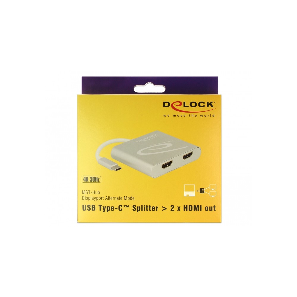 Dieser Splitter von Delock ist für den Anschluss von zwei HDMI Monitoren an einen Computer mit USB-C Schnittstelle und Displayport Alternate Mode Unterstützung geeignet. Zwei Monitore können gleichzeitig an den Ausgängen betrieben werden.