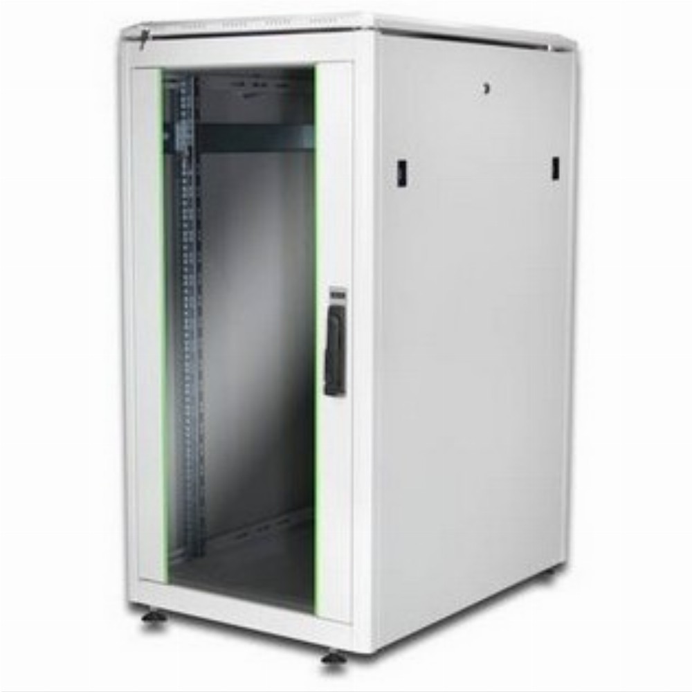 Die DIGITUS Netzwerkschrank Unique Serie wurde für Verkabelung und Netzwerk-Komponenten entwickelt und produziert, Die Schrankserie ist optimiert, das führt zu einer optimalen Leistung aus Qualität und Mehrwert. Jeder Schrank ist perfekt konzipiert, benutzerfreundlich in punkto Anwendung und ästhetisch im Aussehen. Features wie die Kennzeichnung der Höheneinheiten auf den Profilschienen, die einfache und schnelle Montage der Türen und Seitenteile, sowie eine variable Installation der vorderen und hinteren Profilschienen in der Tiefe machen das Produkt attraktiv für Installateure. Das unglaubliche Design der Unique Serie wird mit der Fronttür aus Sicherheitsgleis mit Stahlrahmen und Schwenkhebelgriff abgerundet. Der Türanschlag kann wahlweise von links auf rechts geändert werden. Die Unique Serie ist in 5 unterschiedlichen Größen verfügbar, von 22 Höheneinheiten bis zu 47 Höheneinheiten. Zudem sind unterschiedliche Tiefen von 600mm, 800mm und 1000 mm im Portfolio der Unique Serie. Jeder Schrank enthält eine abschließbare Fronttür mit Sicherheitsglaseinsatz, eine abschließbare Stahlrücktür und abschließbare Seitenwände. Außerdem beinhaltet der Lieferumfang 2 Sätze tiefenverstellbare Profilschienen, Kabeleinführung und Bürstenleiste. Darüber hinaus ist das Dach ist für ein Lüfterelement vorbereitet. Eine große Auswahl an DIGITUS Zubehör ist erhältlich, um den Schrank den Bedürfnissen der Endnutzer anzupassen.