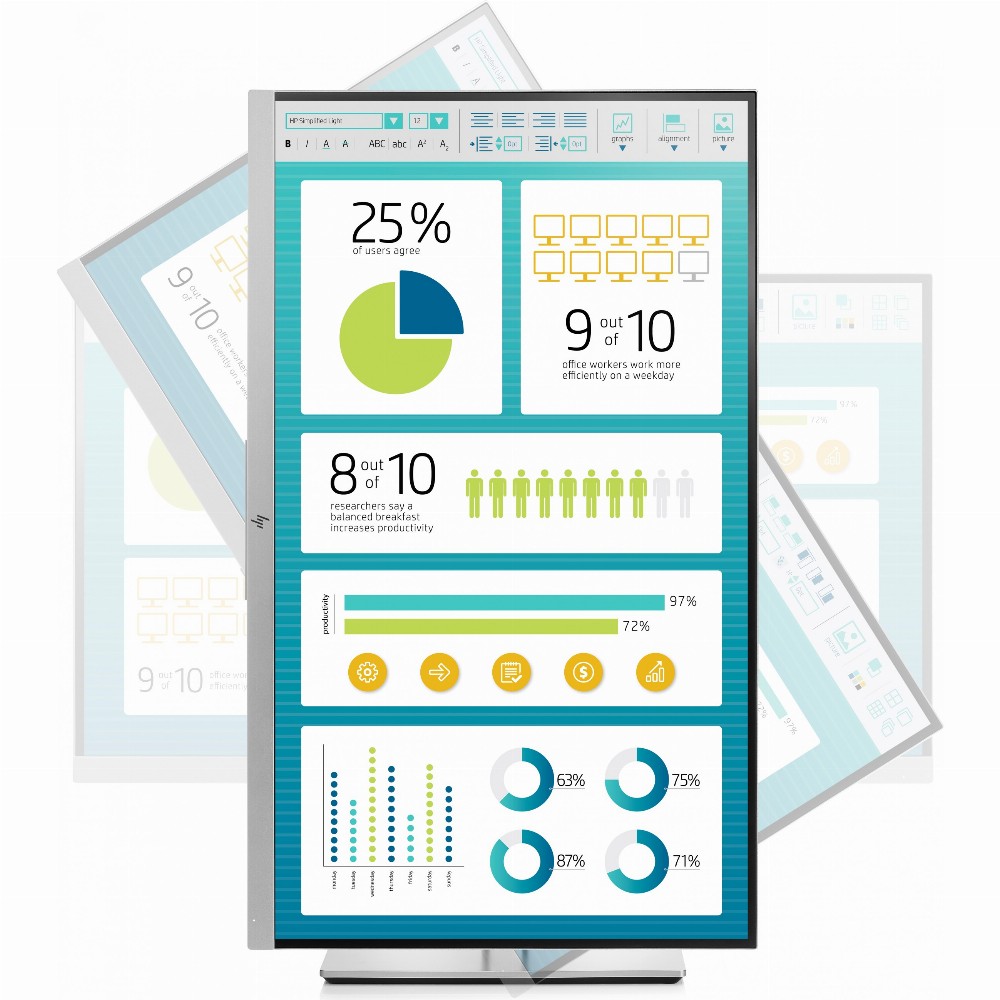 Eleganz trifft auf Substanz in einem auffallend modernen Business-Display, der für eine optimale Anzeige, Produktivität und Ergonomie entwickelt wurde. Der HP EliteDisplay E273 Monitor mit einer Diagonale von 68,58 cm (27 Zoll) verfügt an drei Seiten über eine Micro-Edge-Blende, sodass mehrere Displays nahezu nahtlos nebeneinander angeordnet werden können – Zudem lässt es sich in 4 Richtungen verstellen, sodass Sie den ganzen Tag bequem arbeiten können.