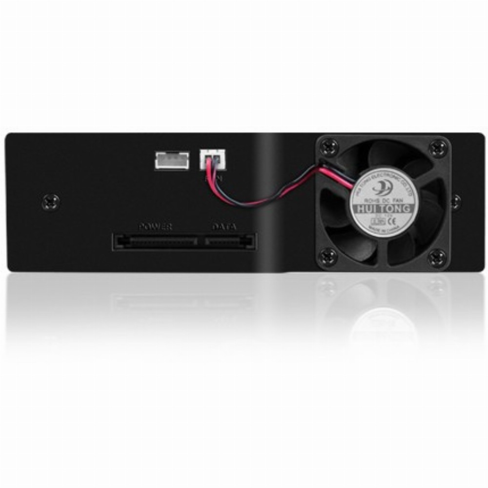 Dieser Festplattenwechselrahmen hat ein verbessertes, effizienteres Kühlsystem. Zunächst führt das neue Aluminiumgehäuse Hitze ab und gibt zusätzlich Stabilität. Gegenüber dem Vorgängermodell ist außerdem der Lüfter gewachsen, von 3 cm auf 4 cm. Die um fast 70 % größere Leistungsfähigkeit des Lüfters ermöglicht geringe Drehzahlen und damit leiseren Betrieb sowie größere Lebensdauer.