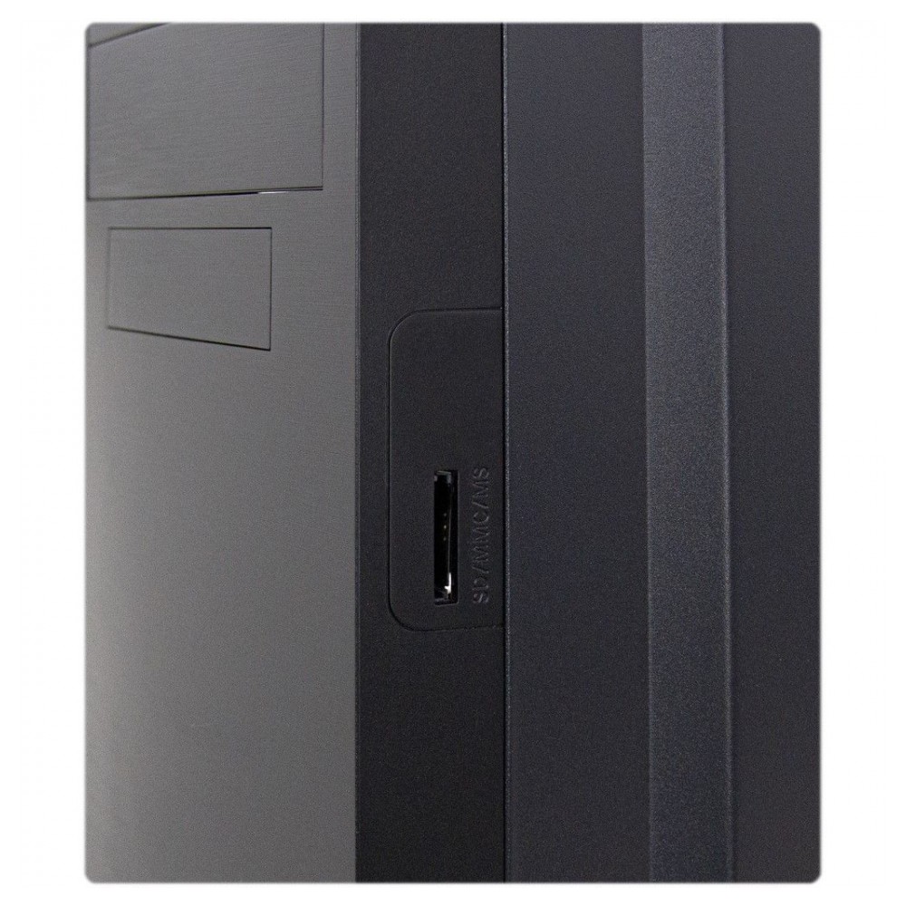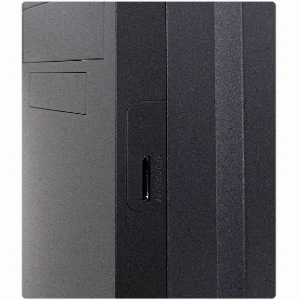 Die beiden USB 3.0 Frontanschlüsse sowie der SDHC/MMC/MS-Kartenleser im Seitenrand der Frontblende runden das positive Gesamtpaket ab und machen diesen Midi-Tower zu einem wahren Allrounder.