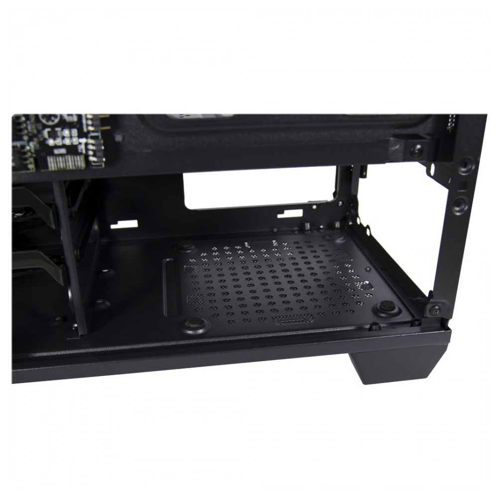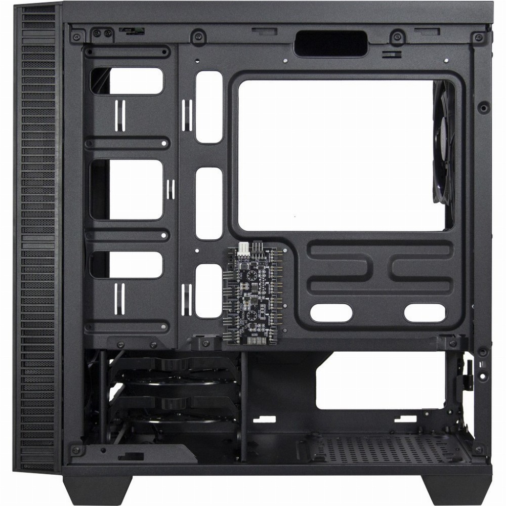 Ein durch RGB-LEDs beleuchteter Unendlichkeitsspiegel in der Front, eine RGB-LED-Leiste im Netzteiltunnel sowie der serienmäßige 120mm RGB-Lüfter machen das X-608 zum wahren Eye-Catcher. Die Front aus Tempered Glass sowie das Seitenteil aus 4mm starkem Tempered Glass, welches sich wie eine Tür öffnen lässt, geben einen großzügigen Einblick auf starke Effekte und Farben, welche sich durch Schalter an der Front oder über den 5V RGB-Header Anschluss (adressierbare RGB-LEDs) verwalten lassen. Viel Platz für weitere Lüfter oder eine Wasserkühlung finden Sie im geräumigen Innenraum des X-608.