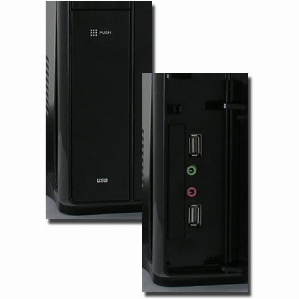 3x SATA, 2x PATA, 1x FDD, 200W max., 80mm-Lüfter, Standfuß für vertikalen Betrieb