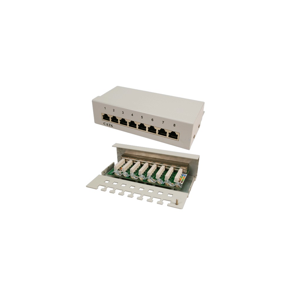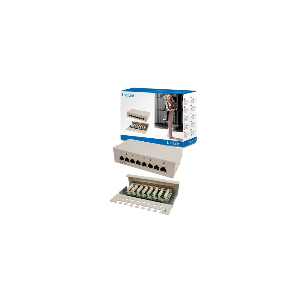 Dieses LogiLink Patch Panel ist aus robustem Stahlblech gefertigt und in RAL7035 lackiert. CAT6 entspricht der Performance Specification ISO/IEC 11801 CLASS E. Die Kabelinstallation erfolgt über die LSA Leisten. Es verfügt über 8 RJ45 Anschlussbuchsen. Das Patch Panel ist bis 250 MHZ einsetzbar. Der Schirmbecher ist über zwei Rändelschrauben abnehmbar und ist daher besonders montagefreundlich. Die Zugentlastung ist über die Rändelschrauben fixierbar.